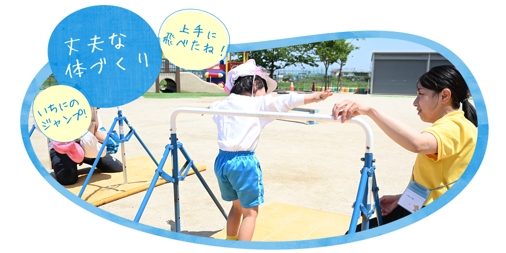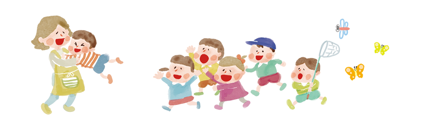 豊かな自然の中で、たくさんのおともだちと やさしい気持ち・強い体・素直な心・考える力を育みながら 心身の健やかなる成長・発達・学びを、目指しています。