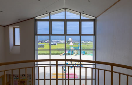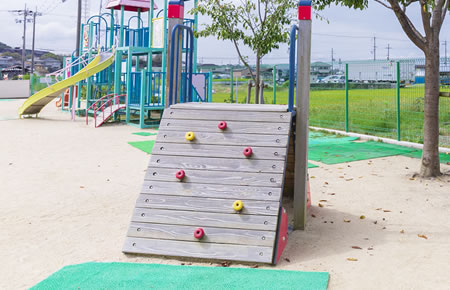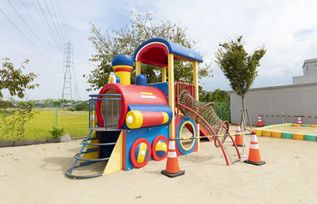 周りの環境に恵まれた、楽しい遊具や天然芝のプレイガーデンでタップリ体を動かして遊ぼう!