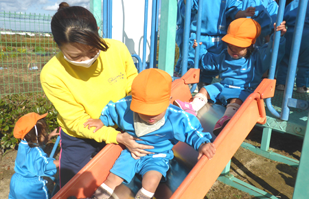 みんな大好きな滑り台! きちんと並んでじゅんばんこ♪